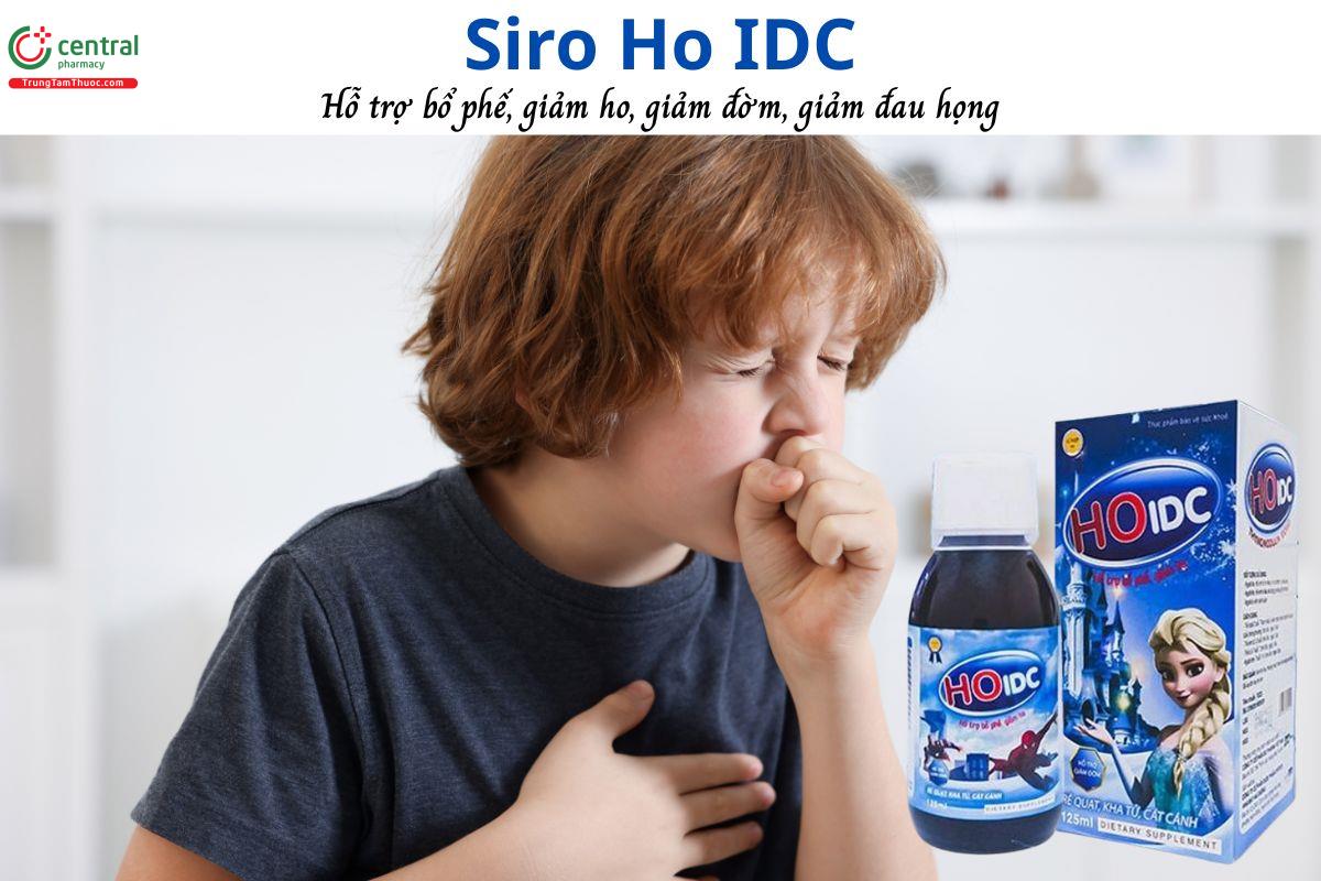 Siro Ho IDC chứa thymomodulin và hỗn hợp chiết xuất thảo mộc, có công dụng: hỗ trợ bổ phế, cải thiện chức năng phế quản. Hỗ trợ giảm ho, giảm đờm và cải thiện tình trạng đau rát họng.