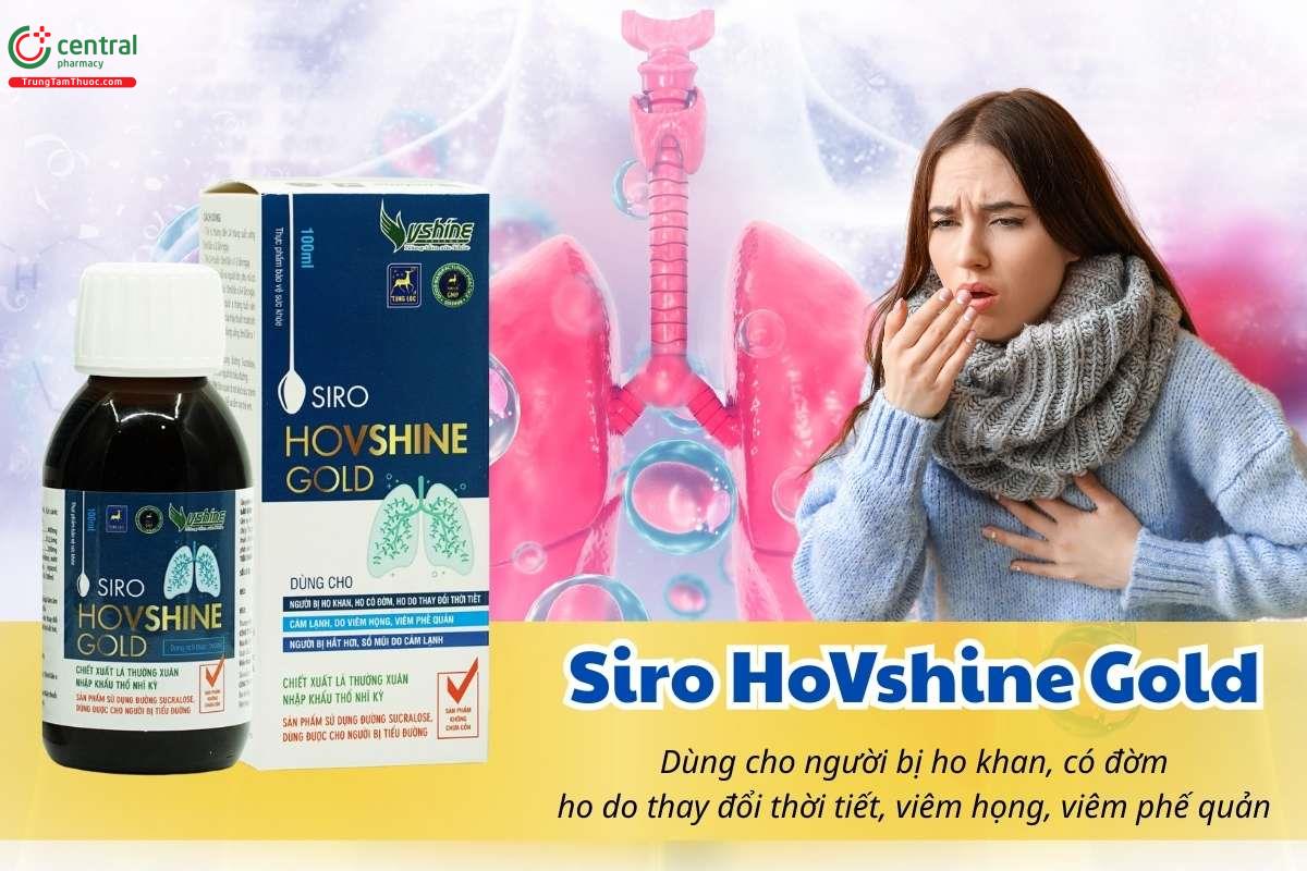Siro HoVshine Gold chai 100ml phù hợp cho người bị ho khan, ho có đờm hoặc ho khi thời tiết thay đổi.