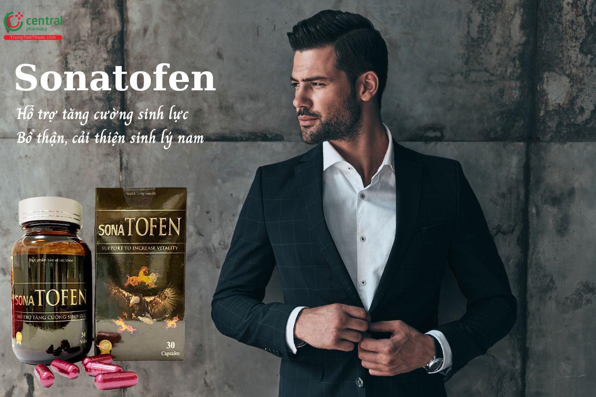 Sonatofen là viên uống hỗ trợ cải thiện sinh lý nam giới, giúp bổ thận, mạnh gân cốt, hỗ trợ nâng cao sinh lý nam, tăng cường sinh lực, hỗ trợ duy trì sức khỏe phái mạnh và làm chậm quá trình mãn dục.