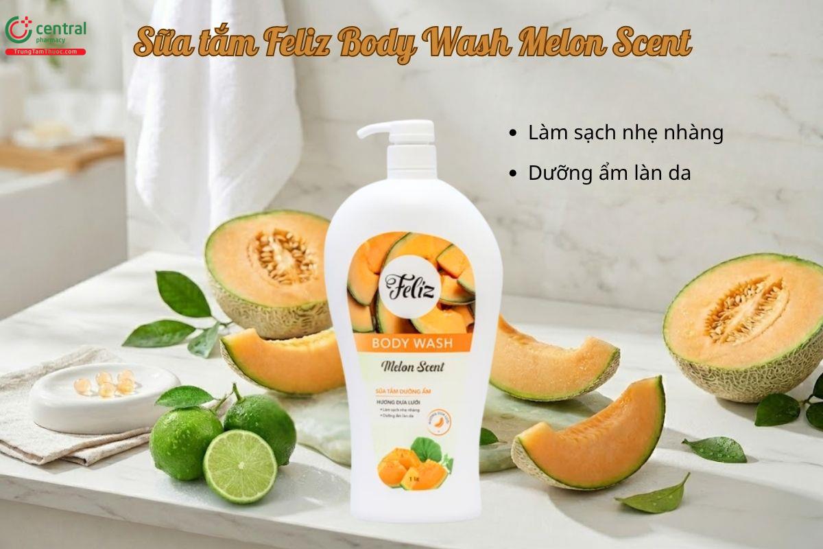 Sữa tắm Feliz Body Wash Melon Scent giúp làm sạch da hiệu quả nhưng vẫn dịu nhẹ, không gây khô căng. Hỗ trợ cấp ẩm, giúp da luôn mềm mịn và ẩm mượt.