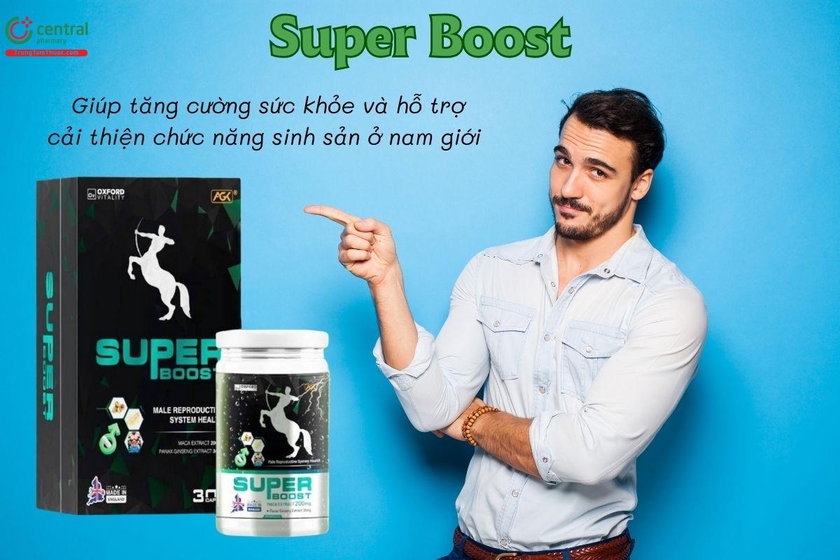 Viên uống Super Boost là thực phẩm bảo vệ sức khỏe giúp tăng cường sức khỏe tổng thể và hỗ trợ cải thiện chức năng sinh sản ở nam giới.