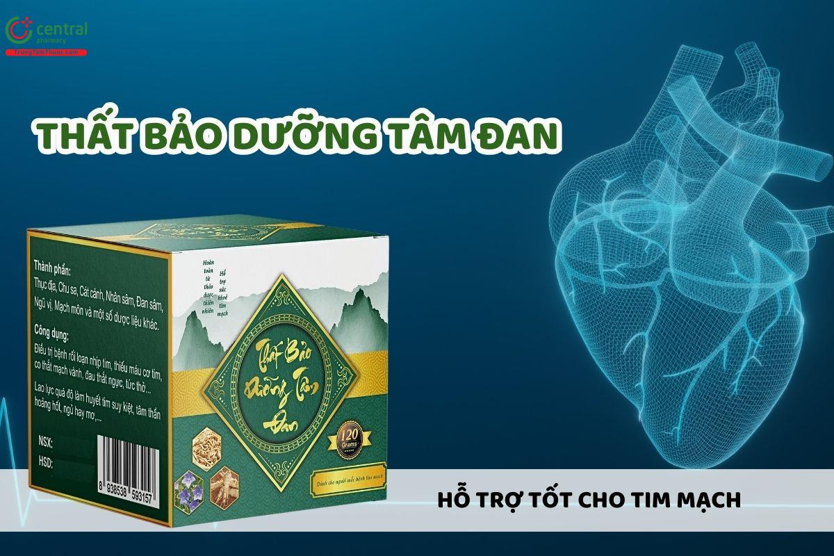Thất Bảo Dưỡng Tâm Đan là một sản phẩm có thành phần từ 13 loại thảo mộc tự nhiên, được nghiên cứu và ứng dụng trong việc hỗ trợ sức khỏe tim mạch. Sản phẩm hỗ trợ cải thiện các vấn đề liên quan đến chức năng tim như khó thở, đau ngực…, giảm nguy cơ mắc các bệnh tim mạch.