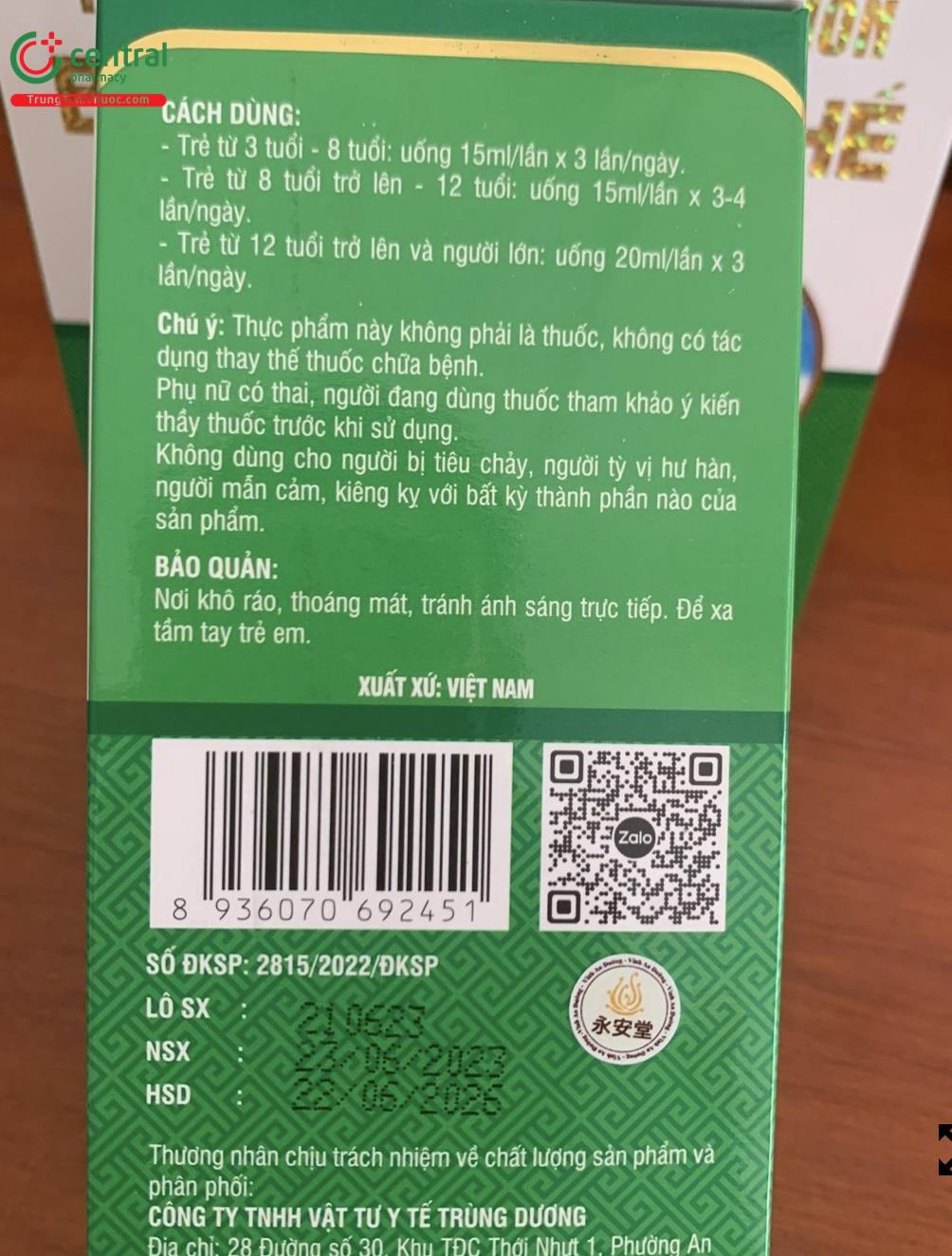 Trẻ từ 8 – 12 tuổi: Uống 15ml/lần, ngày 3 – 4 lần.