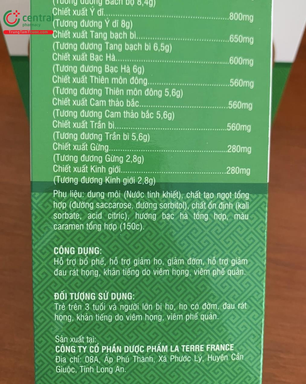 | Thương hiệu | CÔNG TY CỔ PHẦN DƯỢC PHẨM LA TERRE FRANCE |
