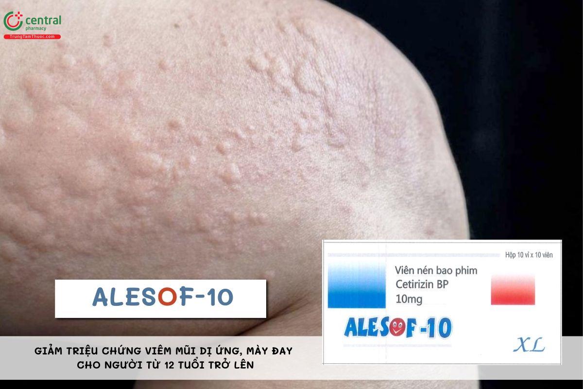 - Thuốc Alesof-10 chứa cetirizine dihydrochloride là kháng histamine H1 thế hệ hai giúp kiểm soát hiệu quả các triệu chứng viêm mũi dị ứng và mày đay mạn tính.