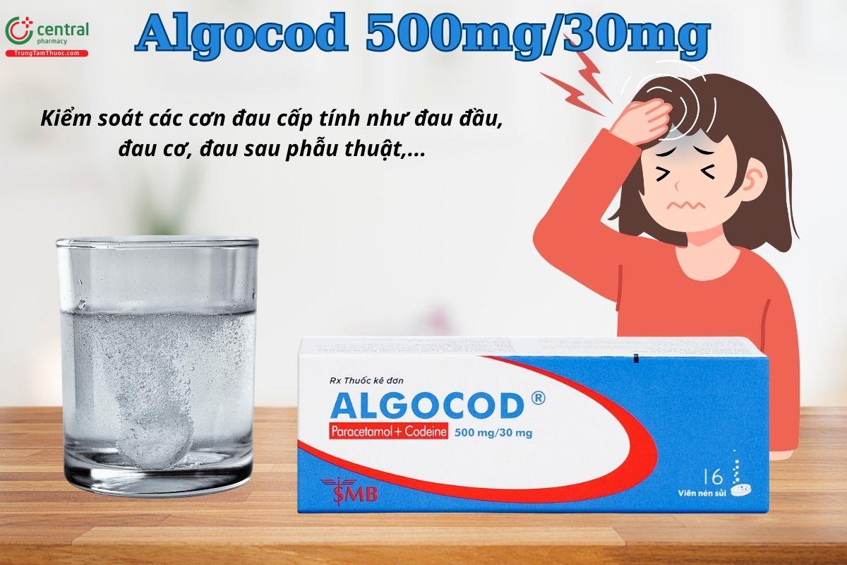 Thuốc Algocod 500mg/30mg chứa hai hoạt chất Paracetamol và Codein, đều thuộc nhóm giảm đau. Sản phẩm được sử dụng cho người từ 12 tuổi (trên 33 kg) để kiểm soát các cơn đau cấp tính mức độ vừa, đặc biệt trong trường hợp dùng Paracetamol hoặc Ibuprofen đơn lẻ không mang lại hiệu quả mong muốn.
