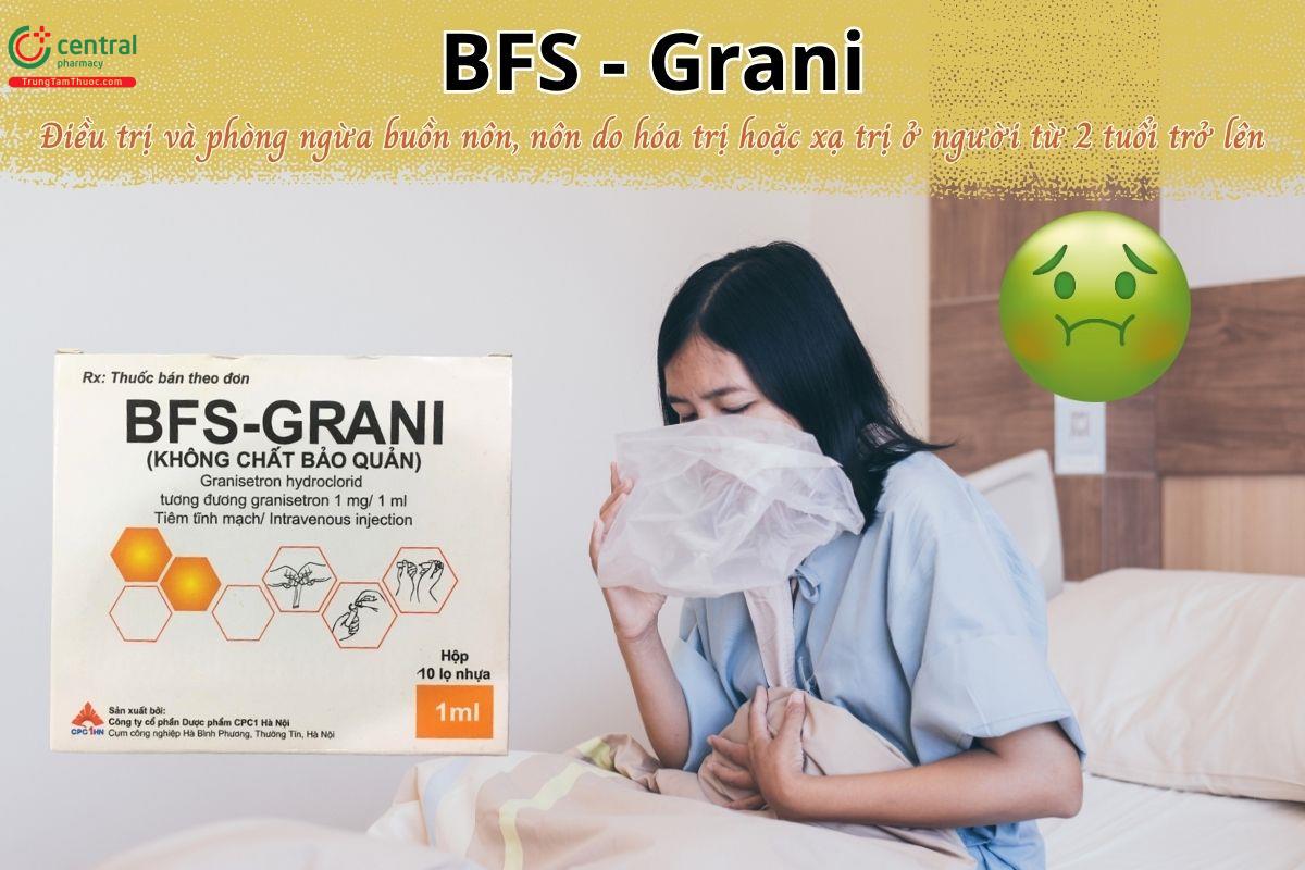 BFS-Grani 1mg/1ml là một thuốc chống nôn chứa hoạt chất Granisetron, thuộc nhóm đối kháng chọn lọc thụ thể serotonin 5-HT3.