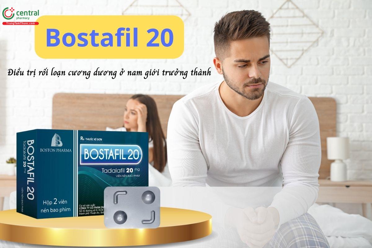 Thuốc Bostafil 20 được chỉ định trong điều trị rối loạn cương dương ở nam giới trưởng thành. Để thuốc phát huy tác dụng, người sử dụng cần có sự kích thích tình dục phù hợp, vì tadalafil không gây cương dương một cách tự phát.