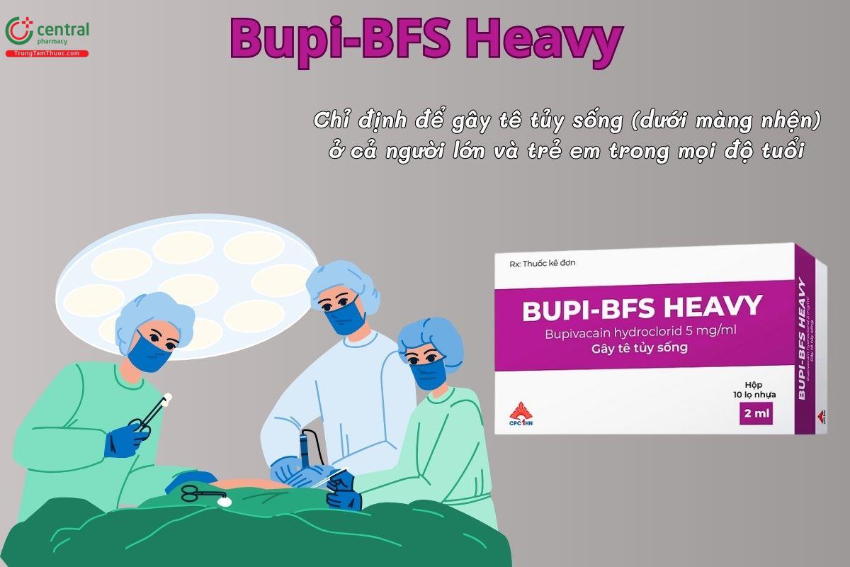 Thuốc Bupi-BFS Heavy được chỉ định để gây tê tủy sống (dưới màng nhện) ở cả người lớn và trẻ em trong mọi độ tuổi, thích hợp cho các loại phẫu thuật như: