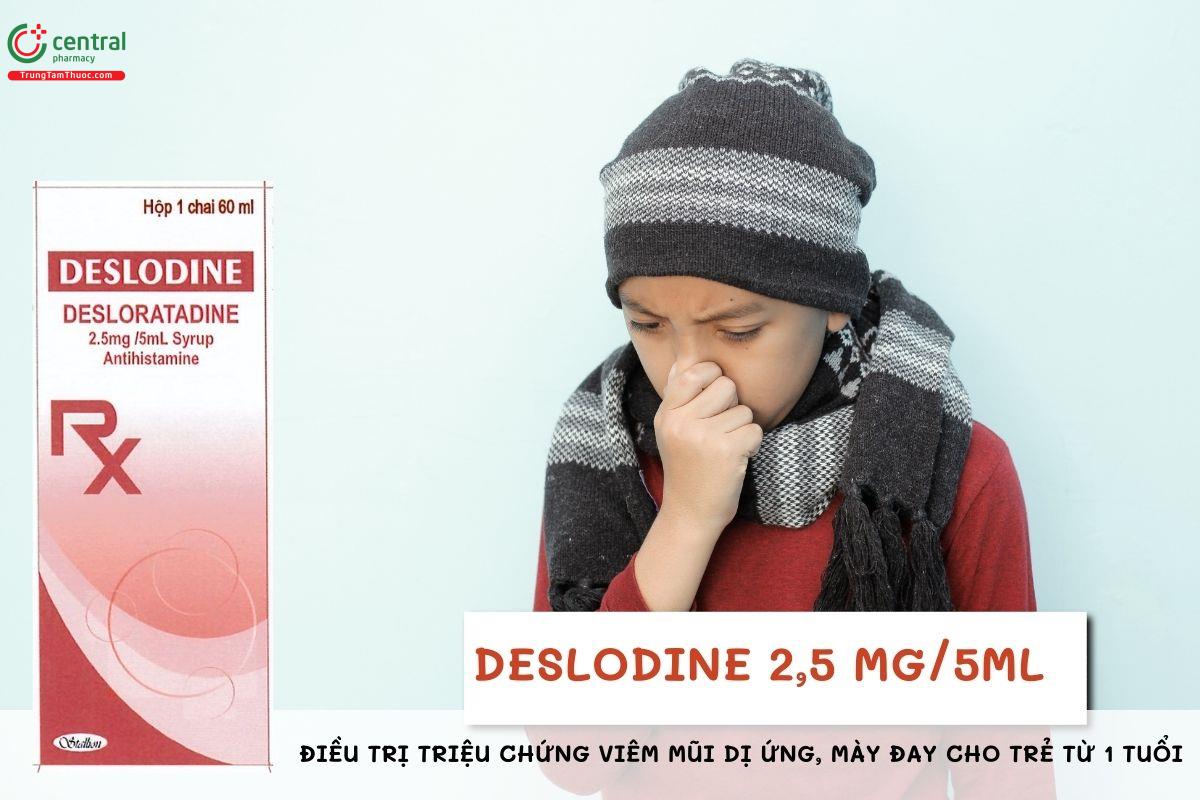 - Deslodine 2,5 mg/5ml là một lựa chọn tốt trong nhóm kháng histamin thế hệ mới vì kiểm soát tốt các triệu chứng dị ứng mà không làm ảnh hưởng nhiều đến sự tỉnh táo của người dùng