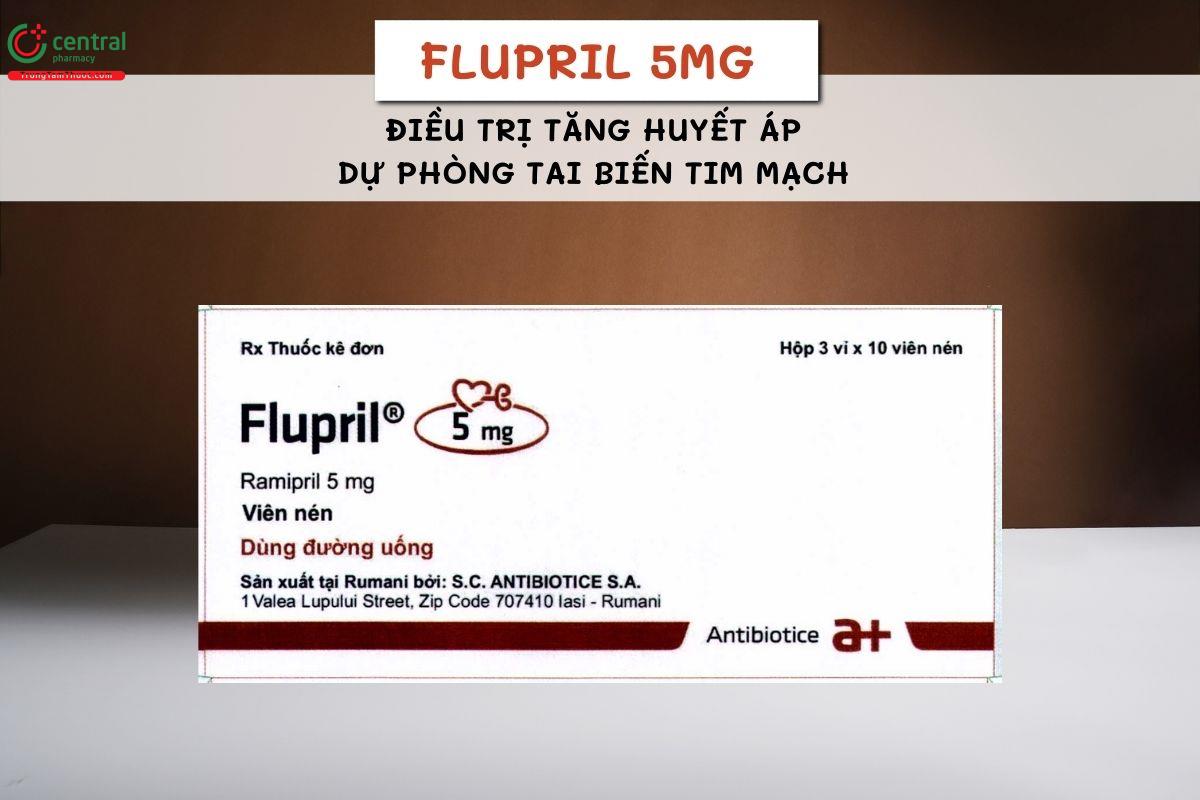 - Thuốc Flupril 5mg được sản xuất bởi Antibiotice S.A. Romania là công ty dược thành lập năm 1955 với hệ thống dây chuyền sản xuất hiện đại và quy trình kiểm soát chất lượng nghiêm ngặt theo tiêu chuẩn châu Âu.