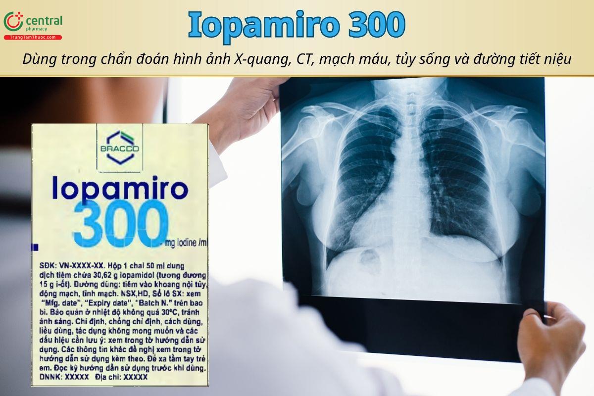 Iopamiro 300 chứa iopamidol, một thuốc cản quang không ion hóa thế hệ mới, giúp hiển thị rõ mạch máu, đường tiết niệu, ống mật, ống tụy, dạ dày, tử cung – vòi trứng, tuyến nước bọt và khớp. Áp suất thẩm thấu thấp, giảm nguy cơ phản ứng không mong muốn. Thuốc tan tốt trong nước, cho hình ảnh sắc nét các khoang và mạch trong cơ thể.