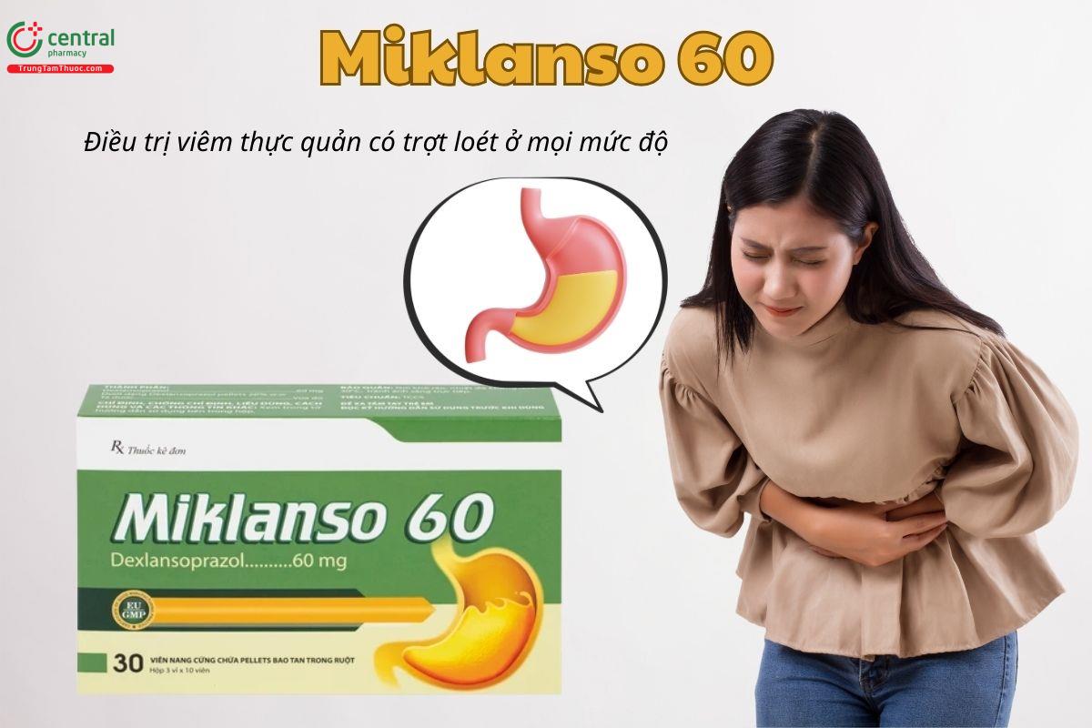 Thuốc Miklanso 60 HDPHARMA được sử dụng để điều trị viêm thực quản có trợt loét ở mọi mức độ. [1]