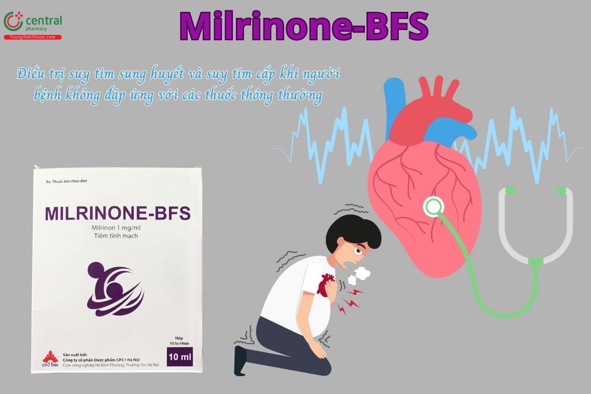 - Thuốc Milrinone-BFS có tác dụng giãn mạch và tăng sức co bóp tim, giúp cải thiện nhanh tình trạng suy tim cấp và suy tim sung huyết.