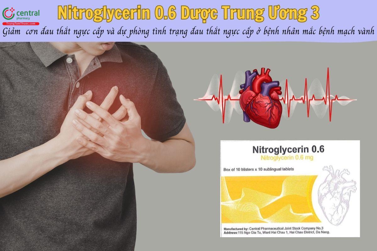 - Nitroglycerin 0.6 giảm nhanh các cơn đau thắt ngực cấp nhờ tác dụng giãn mạch trực tiếp, giúp cải thiện lưu lượng máu và cung cấp oxy cho cơ tim.
