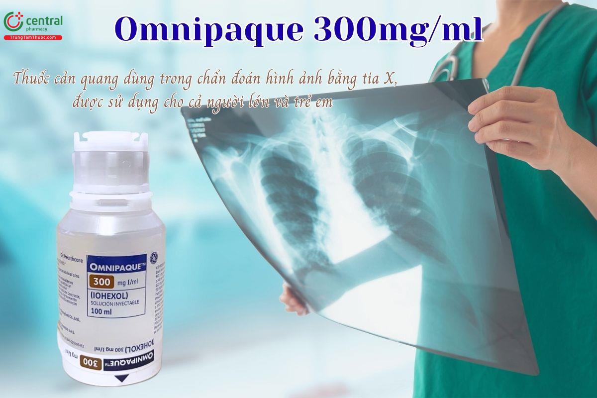 Thuốc Omnipaque 300mg/ml là thuốc cản quang dùng trong chẩn đoán hình ảnh bằng tia X, được sử dụng cho cả người lớn và trẻ em. Sản phẩm có thể hỗ trợ làm rõ cấu trúc cơ thể trong nhiều kỹ thuật như: chụp mạch tim, chụp động mạch xóa nền tĩnh mạch, chụp hệ tiết niệu, chụp tĩnh mạch và chụp cắt lớp vi tính có tiêm thuốc tương phản. [1]