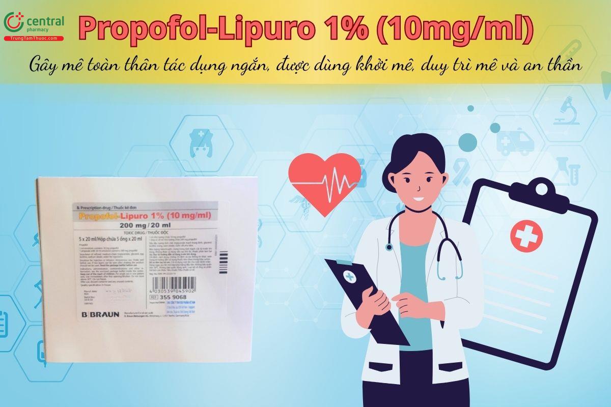 Propofol là thuốc gì? Là thuốc gây mê tĩnh mạch tác dụng nhanh, khởi mê trong 30–40 giây và tác dụng ngắn 4–6 phút. Thuốc không tích lũy lâm sàng, giúp bệnh nhân phục hồi nhanh sau gây mê. Một số trường hợp có thể hạ huyết áp hoặc chậm nhịp tim khi khởi mê, nhưng tình trạng tim mạch thường ổn định trong quá trình duy trì. Nhũ tương chứa triglyceride mạch trung bình và dài giúp giảm cảm giác đau khi tiêm.