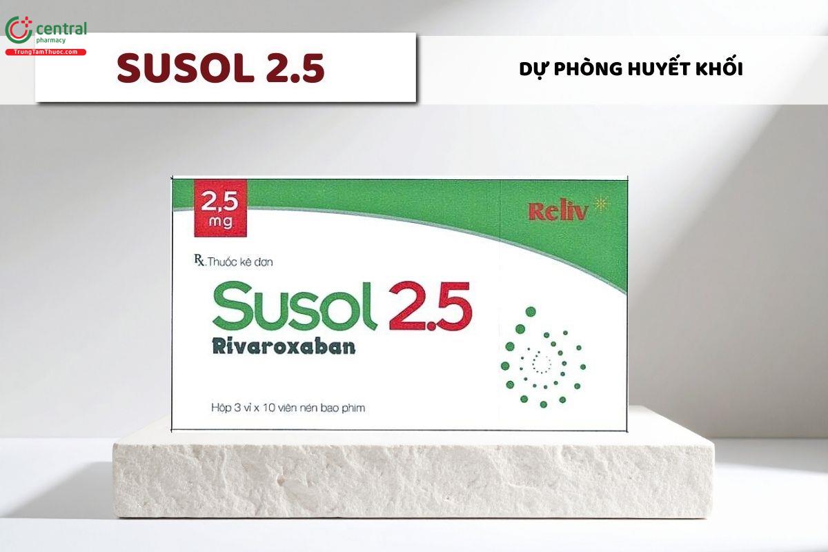 - Thuốc Susol 2.5 chứa rivaroxaban viên 2,5 mg được thiết kế để dùng đường uống, giúp người bệnh không phải tiêm truyền phức tạp.