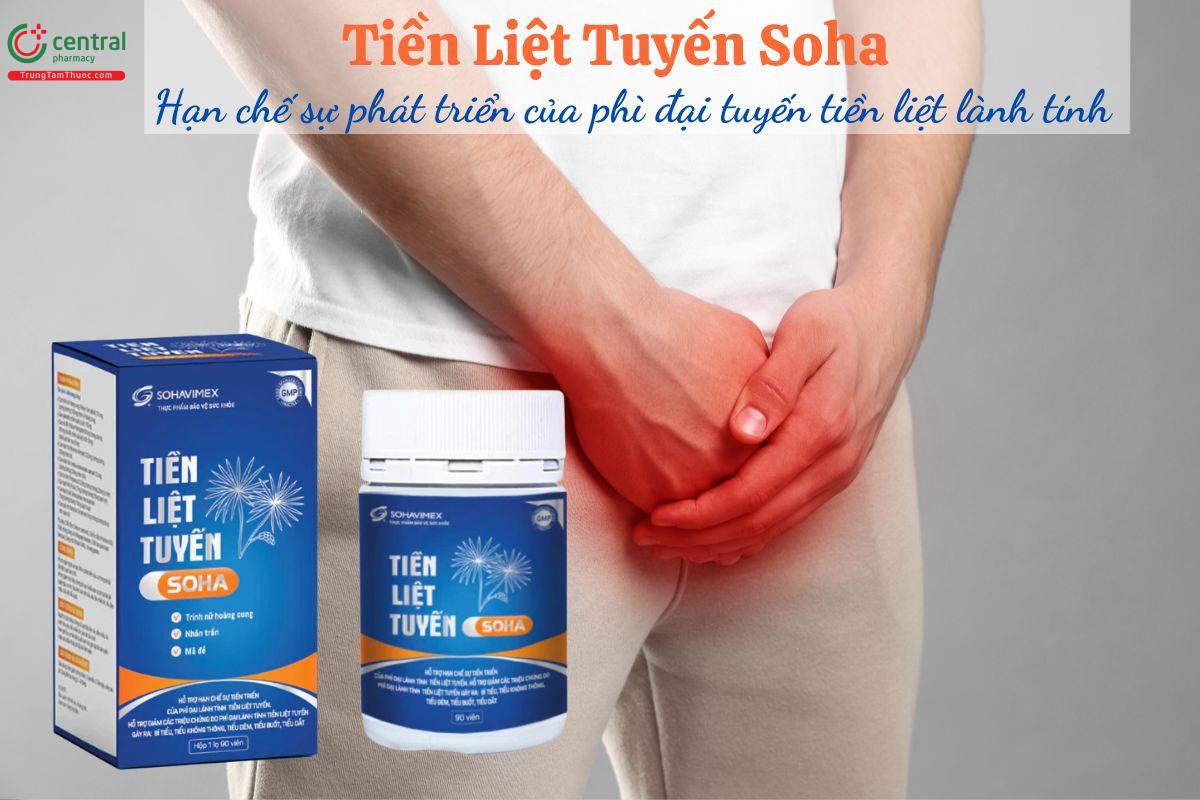 Tiền Liệt Tuyến Soha có công dụng làm chậm quá trình phát triển của phì đại tuyến tiền liệt lành tính. Sản phẩm hỗ trợ cải thiện các rối loạn tiểu tiện do phì đại tuyến tiền liệt gây ra như tiểu khó, tiểu ngắt quãng, tiểu nhiều lần về đêm, tiểu buốt hoặc tiểu rắt.