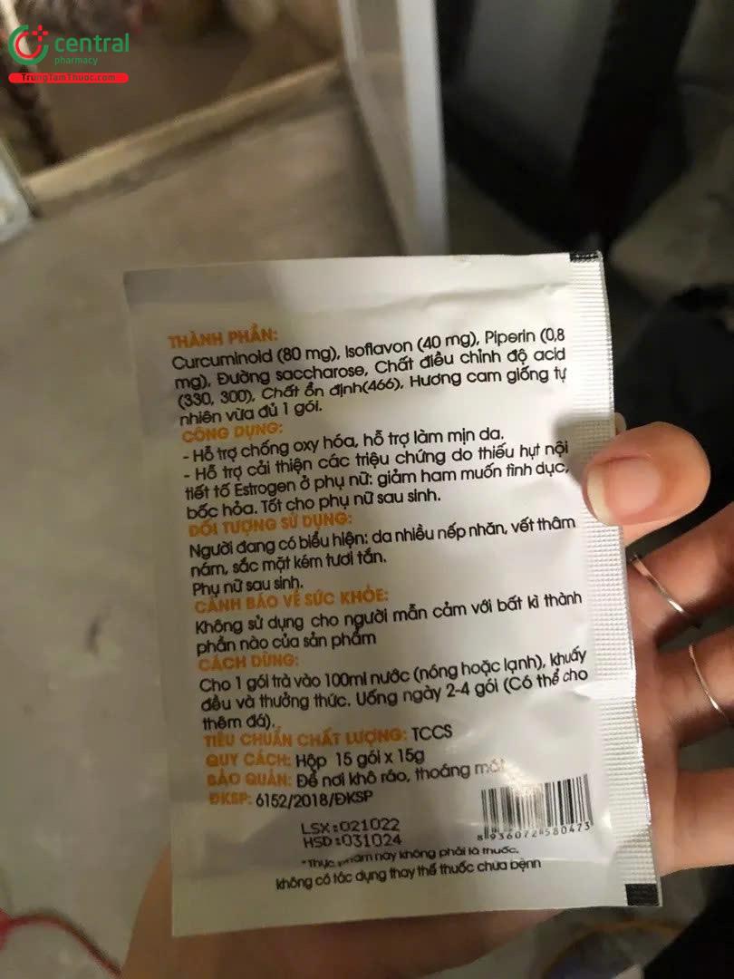 - Công thức kết hợp Curcuminoid, Isoflavon và Piperin có cơ sở dược học rõ ràng. Hỗ trợ đồng thời chống oxy hóa, chăm sóc da và cân bằng nội tiết nữ.