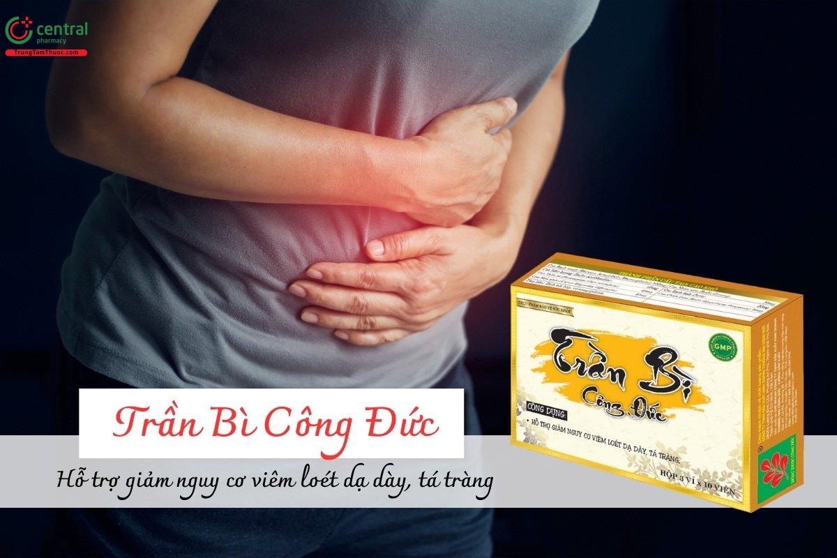 Trần Bì Công Đức hỗ trợ giảm nguy cơ viêm loét dạ dày, tá tràng với các triệu chứng như ợ hơi, ợ chua, đầy bụng, tiêu chảy...[1]