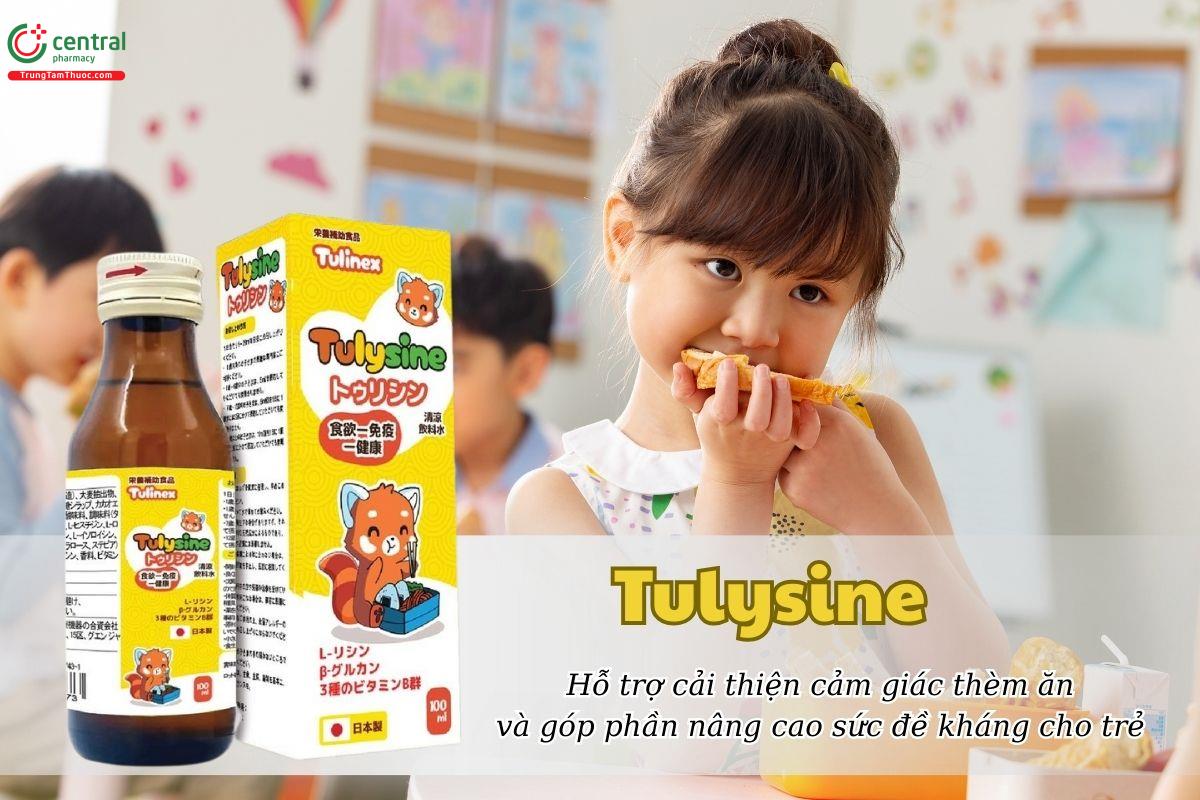 Siro ăn ngon Tulysine giúp cung cấp L-lysine, beta glucan cùng các vitamin nhóm B như B1, B3 và B6, từ đó hỗ trợ cải thiện cảm giác thèm ăn và góp phần nâng cao sức đề kháng cho cơ thể.