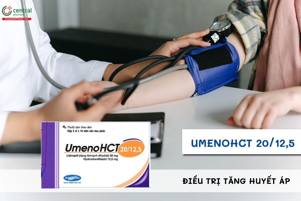 Thuốc UmenoHCT 20/12,5 được chỉ định điều trị tăng huyết áp mức độ nhẹ và vừa ở những bệnh nhân không đạt được mục tiêu kiểm soát huyết áp khi dùng riêng biệt lisinopril hoặc hydroclorothiazid.[1]