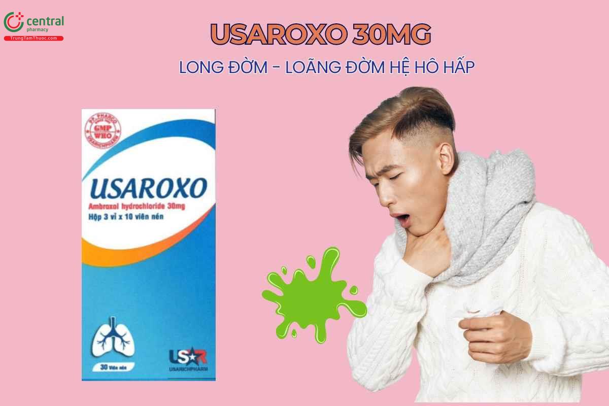 - Thuốc Usaroxo 30mg có hoạt chất ambroxol được chứng minh hiệu quả trong giảm độ đặc của đờm ở các bệnh lý đường hô hấp cấp, giúp dễ dàng loại bỏ đờm.