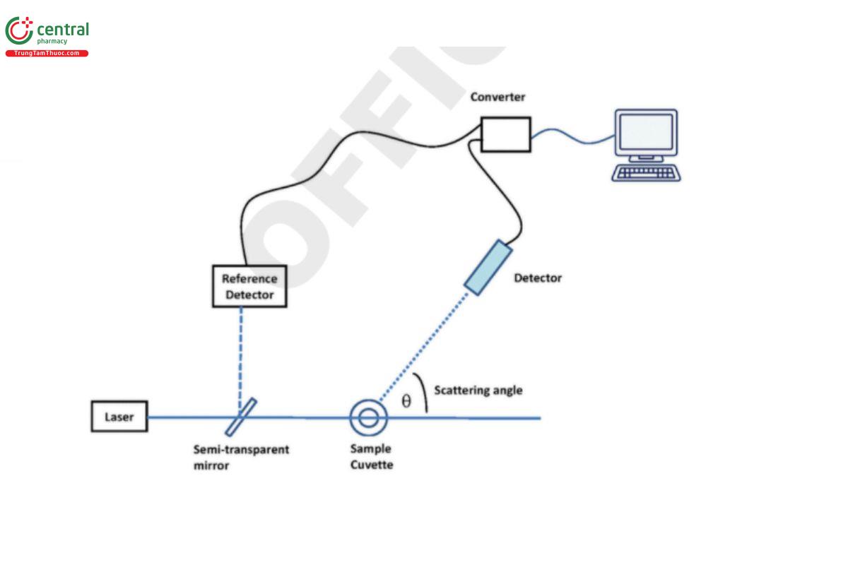 Figure 3 shows a typical setup for the measurement of SLS. A monochromatic light source (i.e., a light source emitting light of only one wavelength; usually a laser) shines light on the sample. The intensity or the power of the scattered light is being measured at a known scattering angle Θ by a detector.
