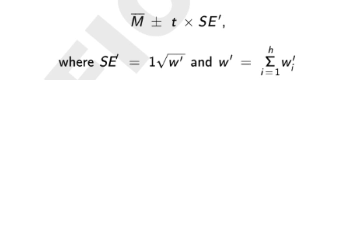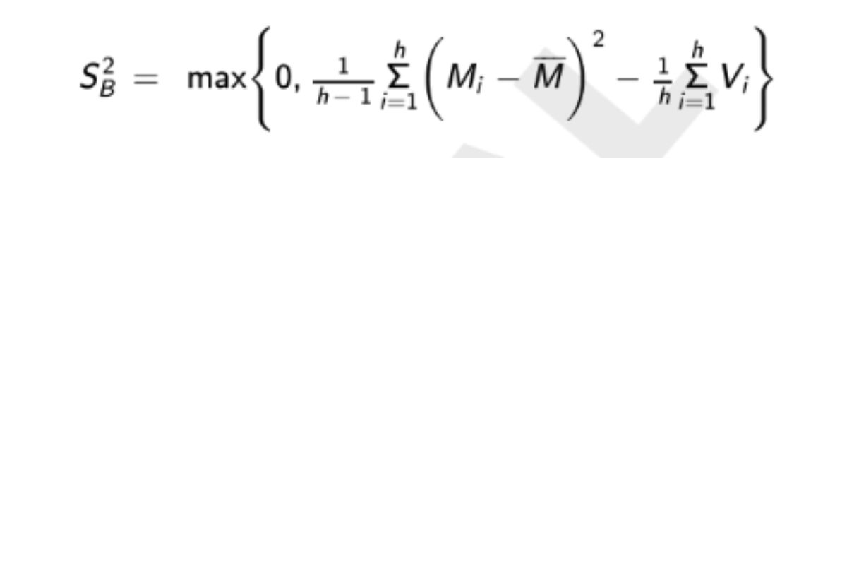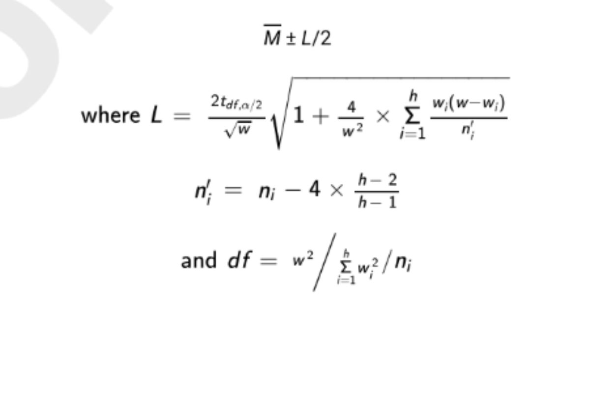 where th-1,α/2 the upper α/2 percentage point (or the two-sided a percentage point) of a t-distribution with h - 1 degrees of freedom. The width, L, of this interval is 2th-1,α/2 SE.