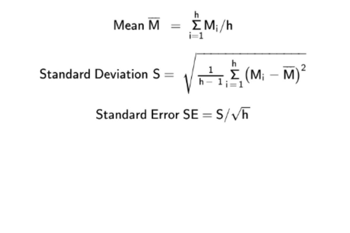 Let Mi denote the logarithm of the relative potency of the ith assay of h assay results to be combined. To combine the h results, the mean, standard deviation, and standard error of the Mi are calculated in the usual way: