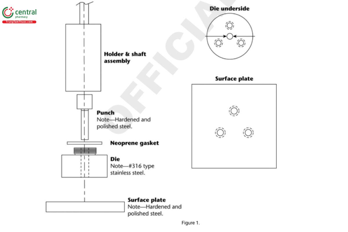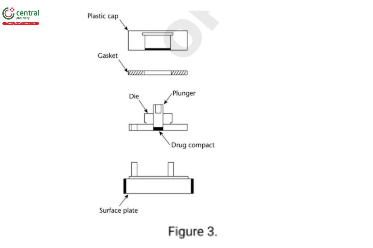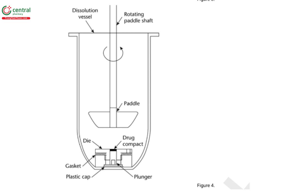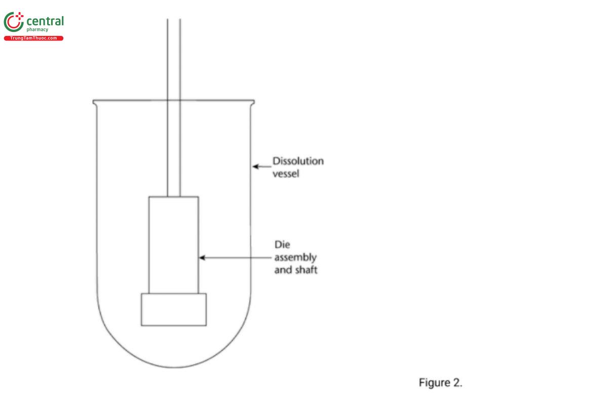 The die assembly is then positioned at the bottom of a specially designed dissolution vessel with a at bottom (Figure 4). The stirring unit (e.g., paddle) is positioned at an appropriate distance (typically 2.54 cm) from the compact surface. The die assembly and stirring unit should be aligned to ensure consistent hydrodynamics, and air bubbles should not be present on the compact surface during testing.