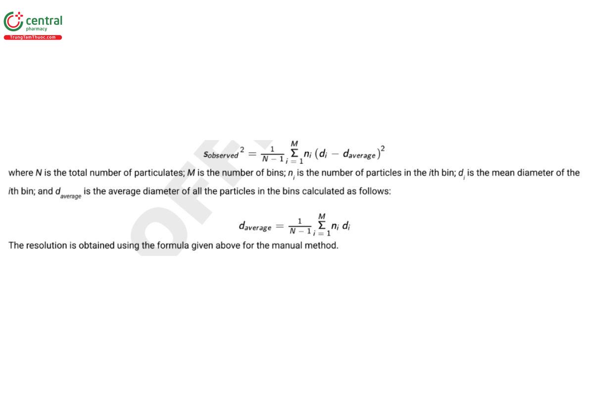 in which d is the diameter of the spheres, in μm, as specified by the supplier; sobserved is the highest observed standard deviation determined for the sphere standard; sstandard is the supplier’s reported standard deviation for the spheres. The resolution is NMT 10%.