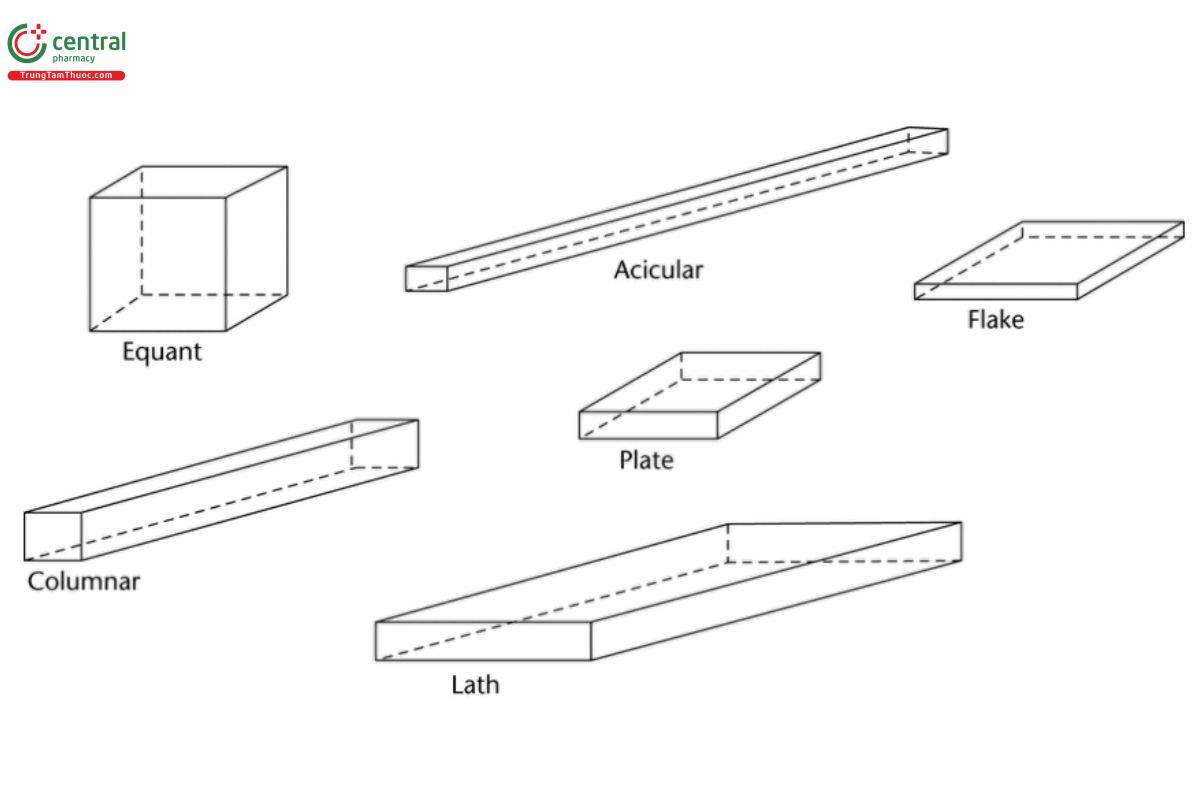 Plate—Flat particles of similar length and width but with greater thickness than akes.