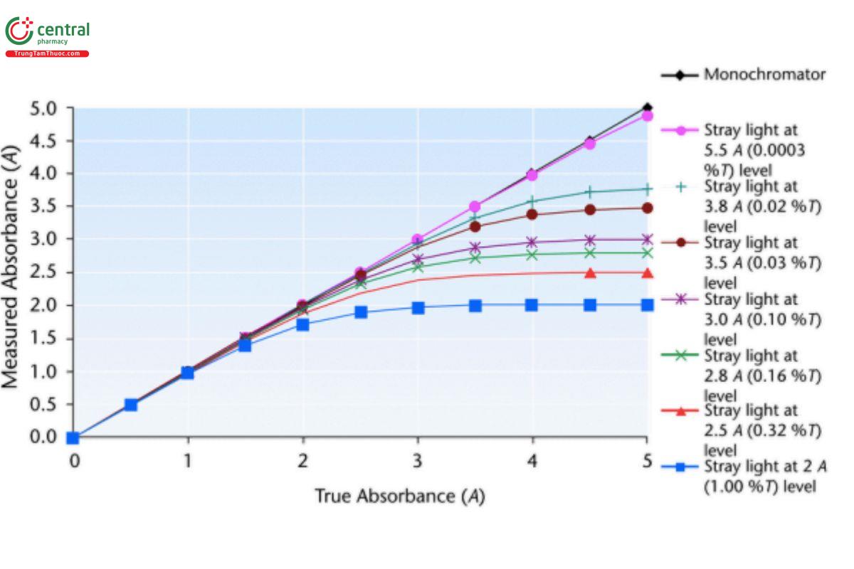 Figure 3. Effect of stray light on measured absorbance.