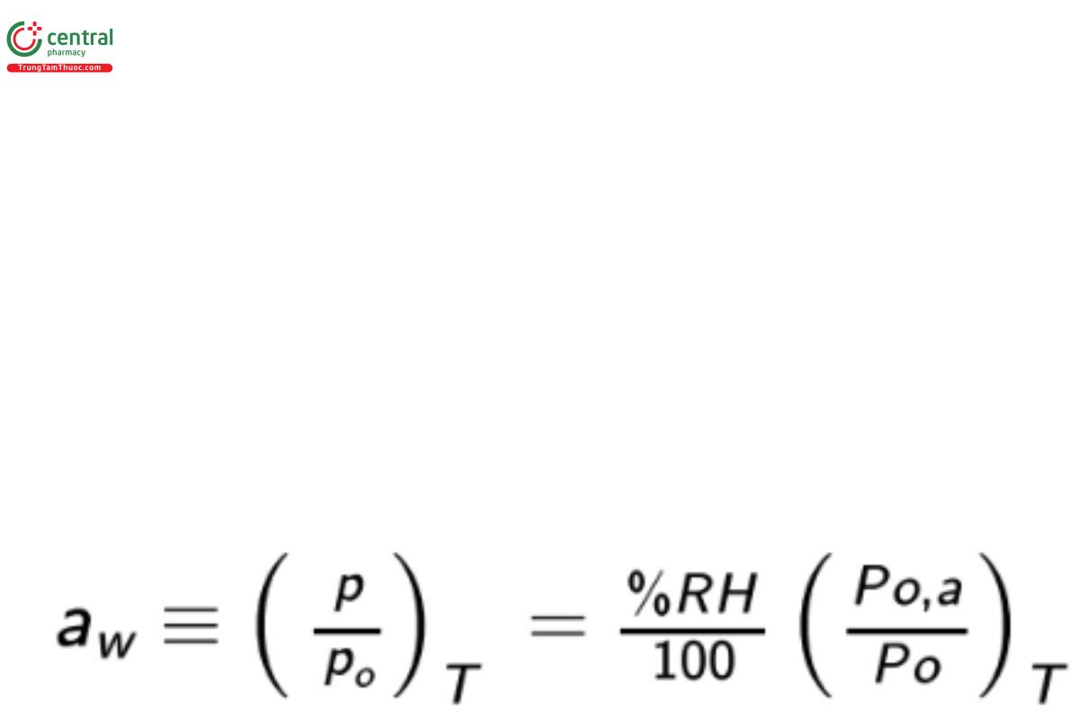 Water activity (aw ) is equal to the vapor pressure of water in the sample (p) relative to the vapor pressure of pure water (po) at the same w temperature (1,2):