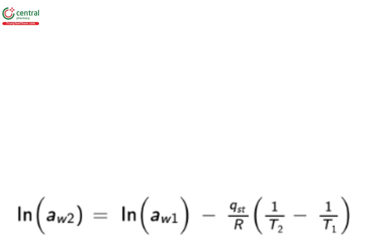 aw1 , aw2 = water activity at T1 and T2 , respectively