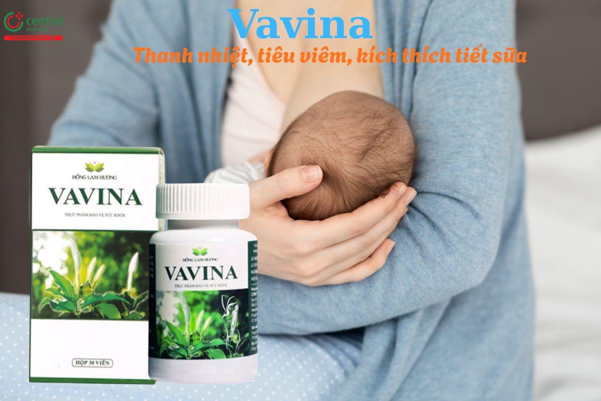 - Vavina mang lại nhiều lợi ích cho sức khỏe, sản phẩm không chỉ giúp thanh nhiệt giải độc, tiêu viêm mà còn kích thích tiết sữa cho mẹ sau sinh, hỗ trợ kiểm soát cân nặng.