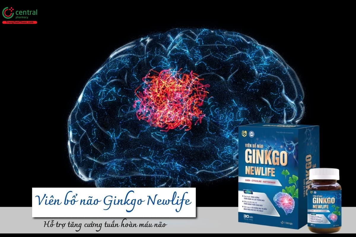 - Viên bổ não Ginkgo Newlife chứa các thành phần tự nhiên như bạch quả, việt quất, sữa ong chúa giúp nuôi dưỡng và hỗ trợ tăng cường hoạt huyết cho não bộ mà không lo tác dụng phụ.
