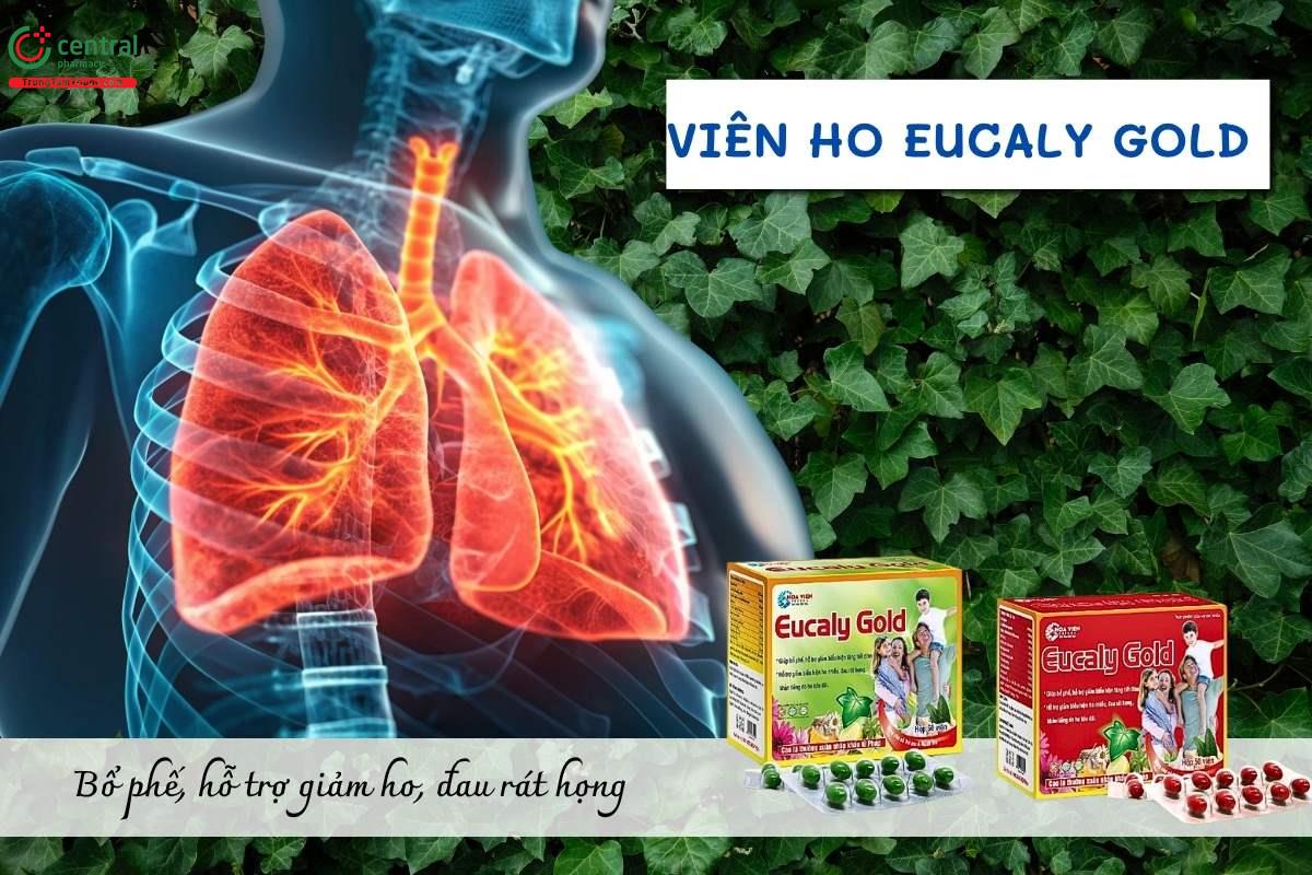 Với thành phần tự nhiên gồm cao lá thường xuân, eucalyptol, chiết xuất cúc tím, nhũ hương, mật ong, cùng các tinh dầu, Viên Ho Eucaly Gold giúp bổ phế, hỗ trợ giảm sự tiết đờm, giúp thông thoáng đường thở. Đồng thời hỗ trợ làm dịu các triệu chứng như ho khan, ho nhiều, đau rát họng, khản tiếng do ho kéo dài.