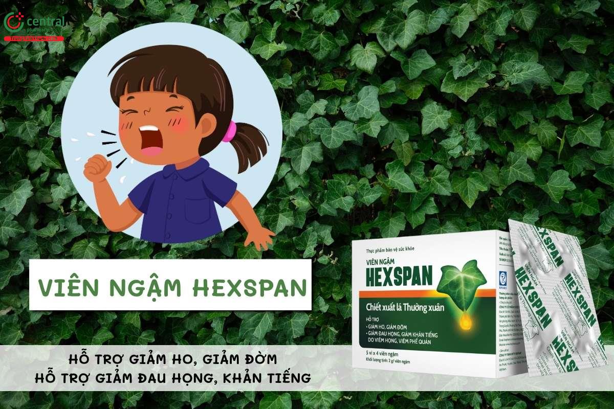 Viên ngậm Hexspan được sử dụng cho người bị ho, ho có đờm, đau họng, khản tiếng do viêm họng, viêm phế quản.