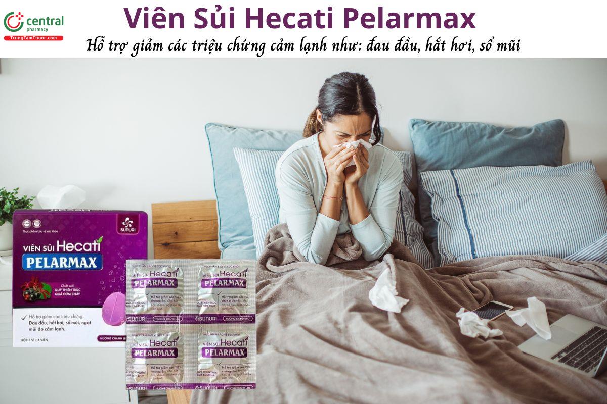 Viên Sủi Hecati Pelarmax dùng cho trẻ từ 6 tuổi, người lớn bị cảm lạnh với các biểu hiện: sổ mũi, ngạt mũi, hắt hơi, đau nhức đầu.
