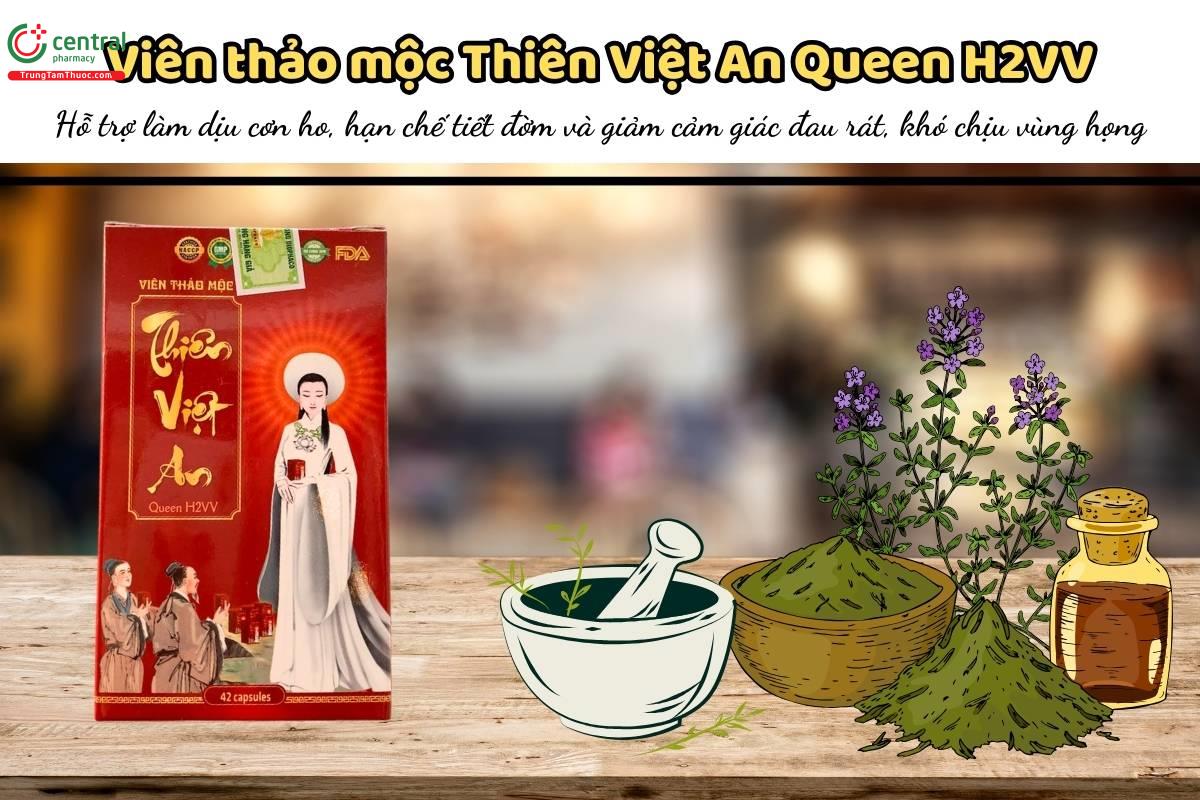 Viên thảo mộc Thiên Việt An Queen H2VV chính hãng phù hợp cho người gặp tình trạng ho khan hoặc ho có đờm, kèm theo đau rát họng, khàn tiếng do viêm họng hay viêm phế quản.