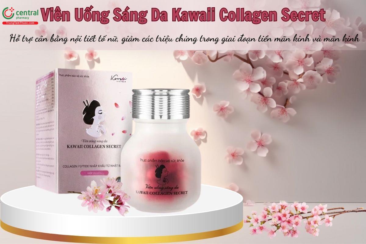 Viên uống Kawaii Collagen Secret giúp hỗ trợ cân bằng nội tiết tố nữ, giảm các triệu chứng khó chịu trong giai đoạn tiền mãn kinh và mãn kinh. Sản phẩm còn giúp làm mờ nám, sạm, khô và nhăn da, đồng thời góp phần dưỡng sáng và cải thiện vẻ đẹp làn da.