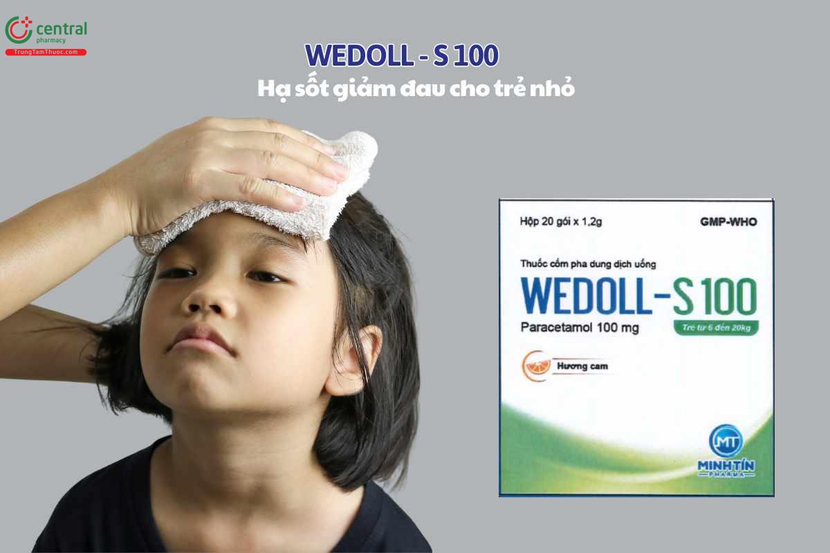 Thuốc Wedoll - S 100 được chỉ định điều trị các triệu chứng đau từ nhẹ đến trung bình và hạ sốt ở trẻ nhỏ có cân nặng từ 6-20kg (tương ứng độ tuổi từ 3 tháng đến 7 tuổi). [1]