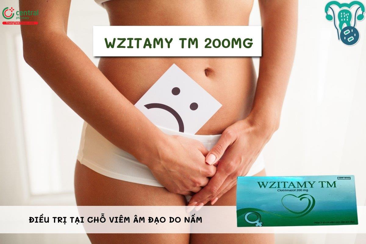 - Thuốc Wzitamy TM 200mg chứa clotrimazol hàm lượng phù hợp giúp kiểm soát nhiễm nấm Candida tại chỗ, được bào chế dạng viên đặt âm đạo giúp thuốc tập trung tác dụng trực tiếp tại vị trí tổn thương.