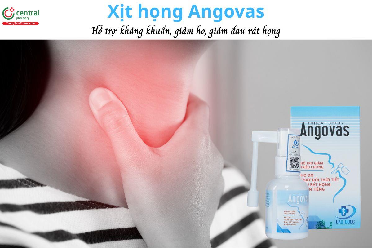 Xịt họng Angovas phù hợp dùng cho người đang bị viêm họng, đau họng, khản tiếng, viêm damidan.