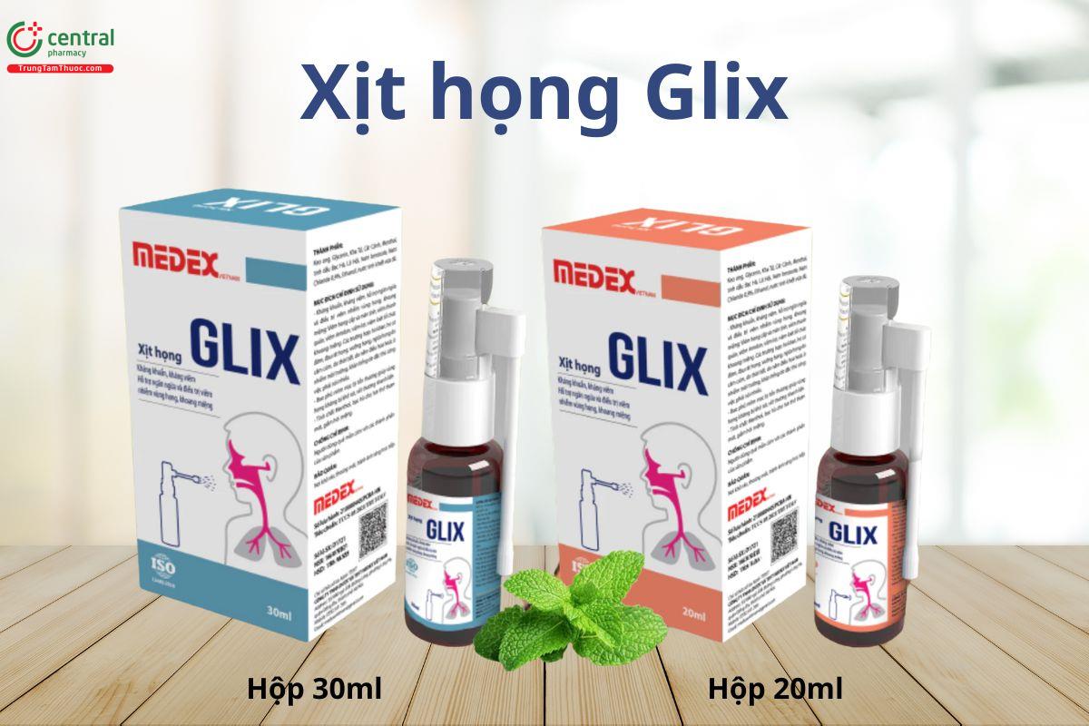 Xịt họng GLIX 30ml giúp hỗ trợ kháng khuẩn, kháng viêm, hỗ trợ ngăn ngừa viêm nhiễm khoang miệng - họng và làm giảm các triệu chứng của viêm thanh quản, viêm damidan, viêm họng cấp và mãn tính, viêm lợi và viêm loét niêm mạc miệng.