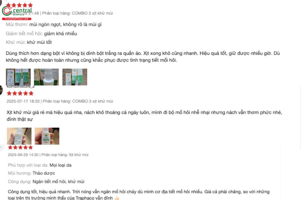 Báo cáo về tương tác thuốc của Xịt khử mùi Trapha chưa được ghi nhận từ người dùng