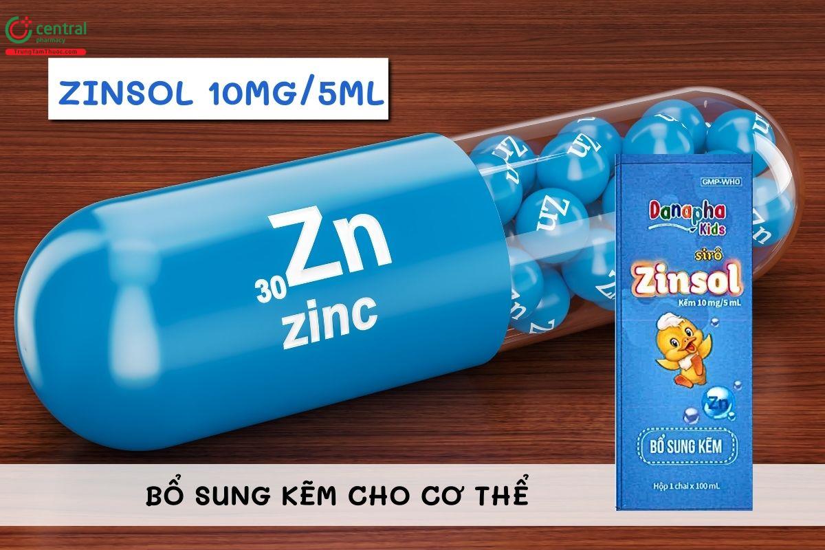 Siro Zinsol 10mg/5ml được chỉ định để bổ sung kẽm trong các trường hợp thiếu kẽm đã được chẩn đoán. Được ứng dụng trong các phác đồ điều trị sử dụng Penicillamin và những tác nhân tạo phức chelat khác.[1]
